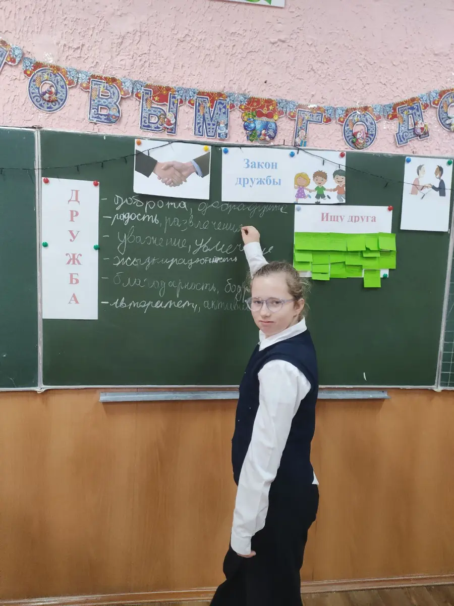 С радостью мы классный час посетили. И дружбы закон на нем изучили. Теперь четко знаем, кто друг настоящий. Дружить и быть другом - вот оно счастье!