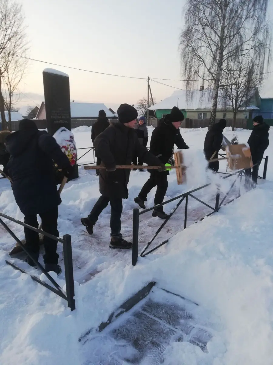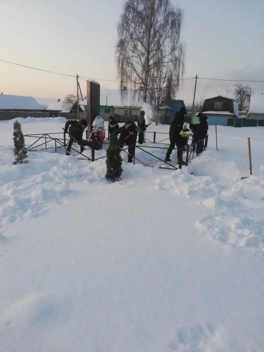 Школьники добросовестно выполнили уборку территории от снега. Их работа сделала это памятное место более ухоженным и торжественным, достойным памяти защитников Отечества.