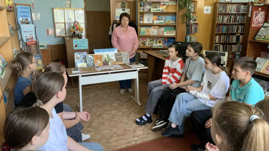 Мероприятие для учащихся 6-х классов проходило в виде микса: обзора книг о Великой Отечественной войне, просмотра буктрейлеров, кинокадров, цикла картин М. Савицкого «Цифры на сердце», звучали песни «Орлёнок», «Пионерам-героям» и др.