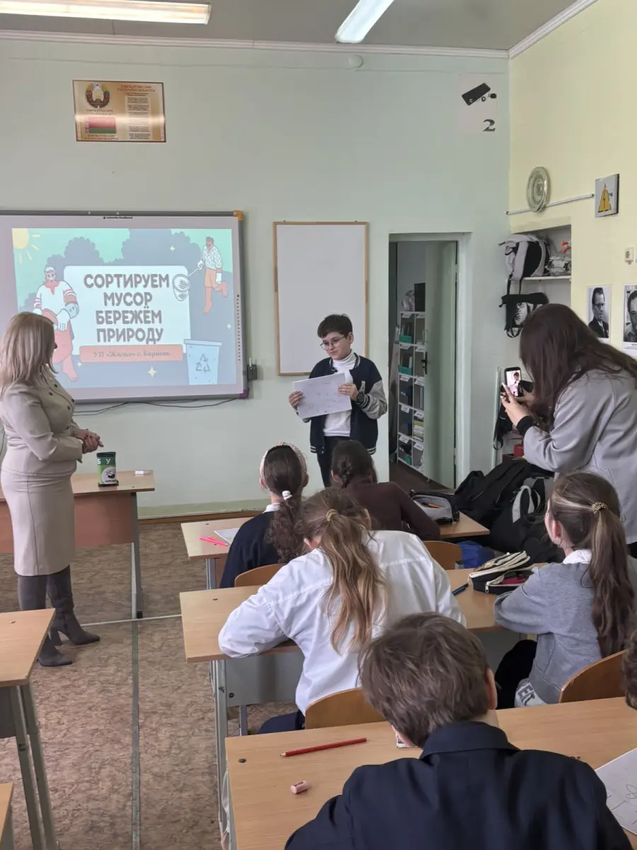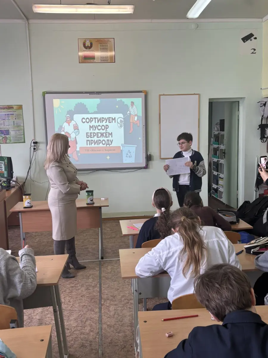 В рамках экологического просвещения и формирования ответственного отношения к окружающей среде представители УП «Жилье» провели необычный урок для учеников 5 «Б» класса. Встреча была посвящена одной из самых актуальных тем современности — раздельному сбору отходов.
