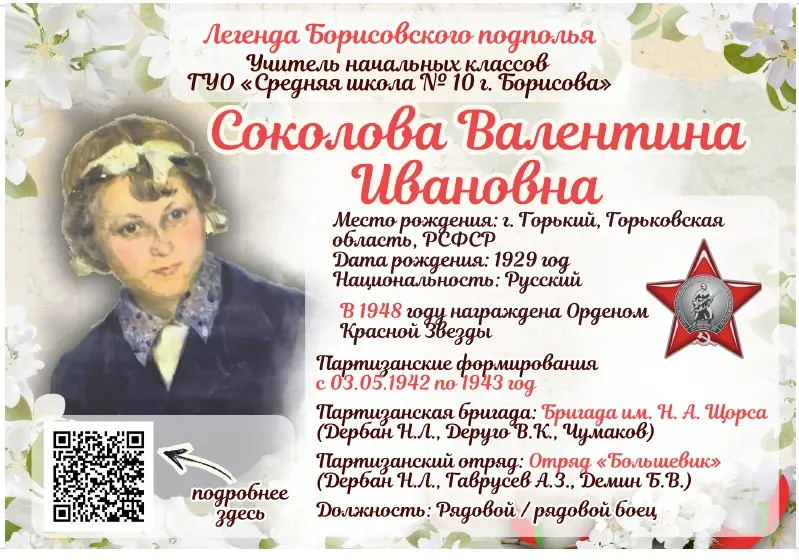 Аўтар публікацыі Аксана Мыцько падрабязна апісвае подзвіг курсантаў Барысаўскага танкавага вучылішча, іх камандзіраў Івана Сусайкова і Аляксандра Лізюкова, а таксама воінаў 1-й Маскоўскай мотастралковай дывізіі палкоўніка Якава Крэйзера. Аднак асаблівая ўвага ў артыкуле надаецца жанчыне, якой наша школа вельмі ганарыцца і чыё імя імкнецца ўвекавечыць, — Валянціне Іванаўне Сакаловай. З 1955 па 1988 год яна працавала настаўніцай пачатковых класаў у нашай школе. Як успамінае ў артыкуле педагог Ірына Красічэнка, Валянціна Іванаўна была вельмі сціплым, добрым чалавекам, любіла дзяцей і карысталася вялікім аўтарытэтам сярод калег і бацькоў.