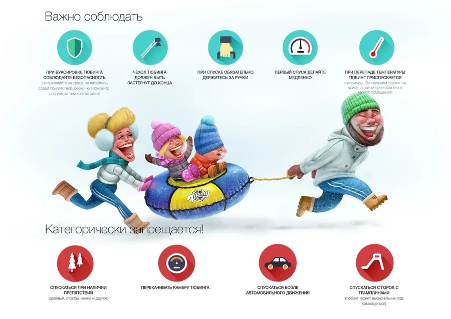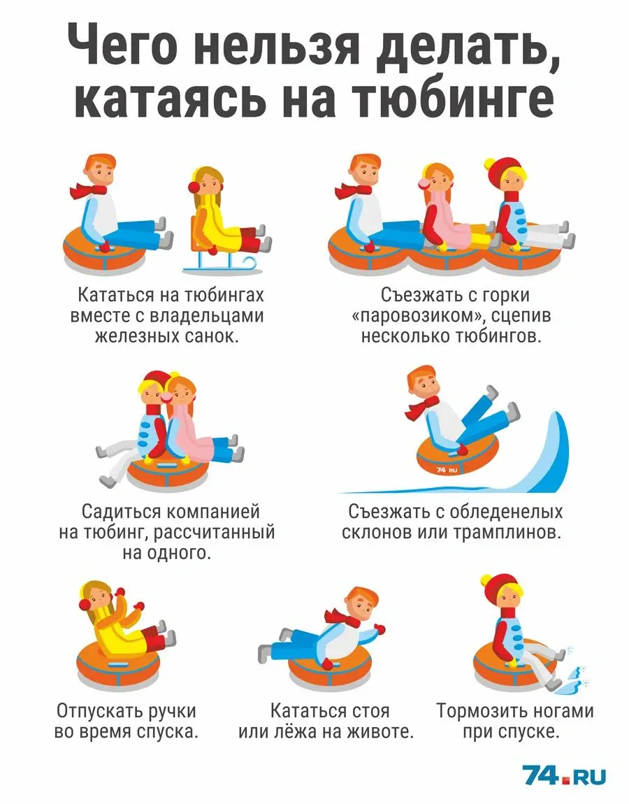 Катание на тюбинге («ватрушке») – это отдых, который одинаково подходит взрослым и детям, но в то же время является одной из самых опасных зимних забав. Ежегодно много детей получают различные травмы, являющиеся последствиями такого развлечения. И когда ребенок или даже взрослый садятся на него на горке, зачастую никто не задумывается о главном – собственной безопасности, проявляя беспечность, которая может дорого обойтись
