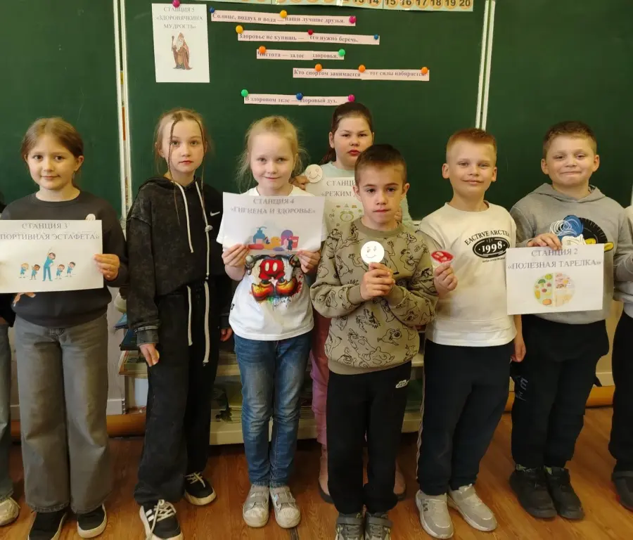 11 апреля нашей школе прошла увлекательная квест-игра «Здоровым быть здорово», посвященная пропаганде здорового образа жизни. На старте команды получили маршрутные листы и отправились покорять станции, каждая из которых проверяла их знания и ловкость. На станции «Режим дня» ребята составляли правильный распорядок из перепутанных карточек и доказывали, почему важен полноценный сон. Станция «Полезная тарелка» заставила участников задуматься: из предложенных продуктов они отбирали только те, что приносят пользу организму. Настоящий азарт вызвала «Спортивная эстафета», где скорость, командный дух и координация движений стали главными ключами к успеху. Останавливаясь на станциях «Гигиена и здоровье», школьники отгадывали загадки, о предметах личной гигиены. Финальным аккордом стала станция «Здоровячкина мудрость», где команды состаляли пословицы о здоровье . Все участники показали отличные результаты и усвоили главное: беречь свое здоровье — это не скучно, а очень увлекательно.