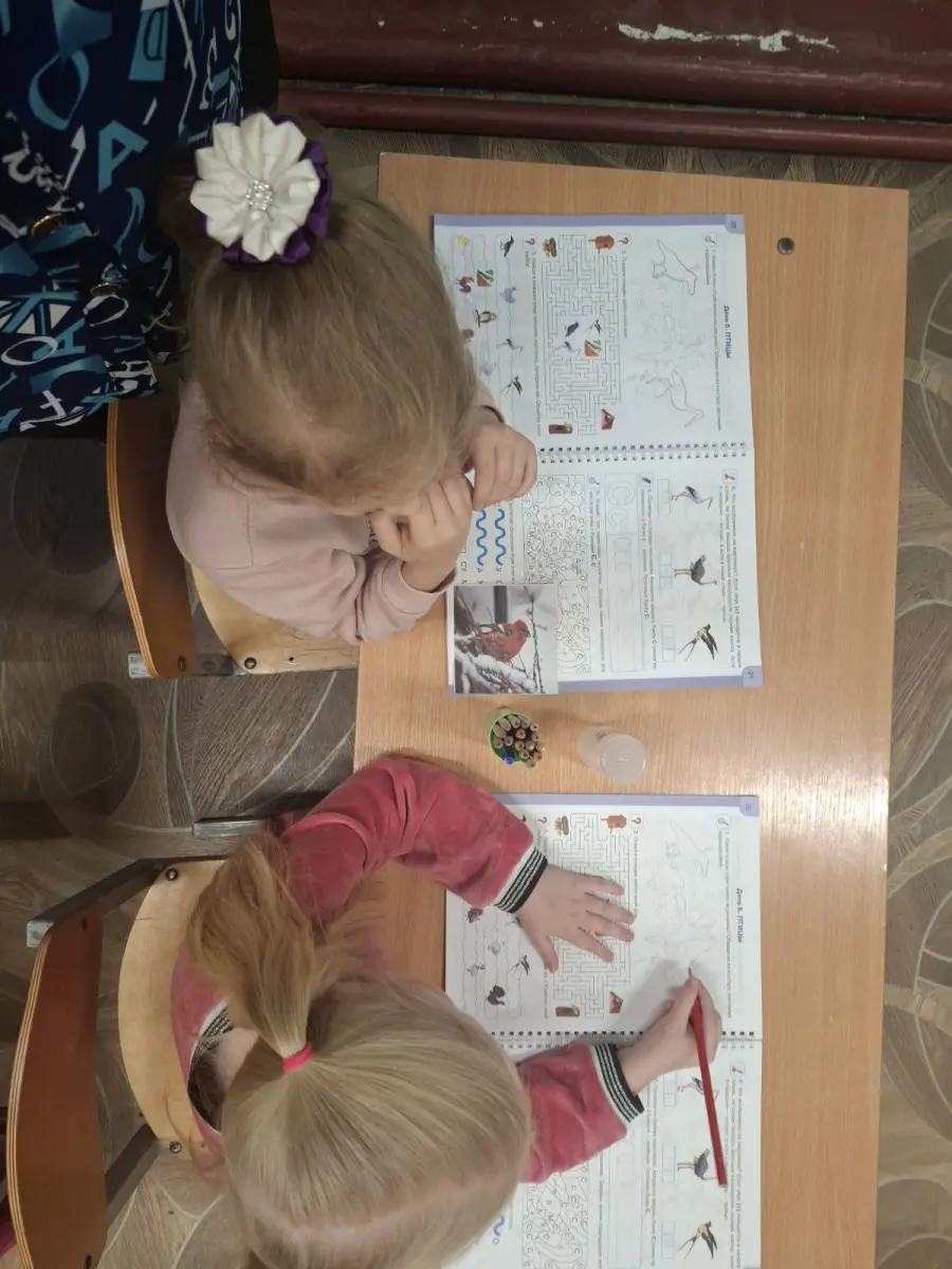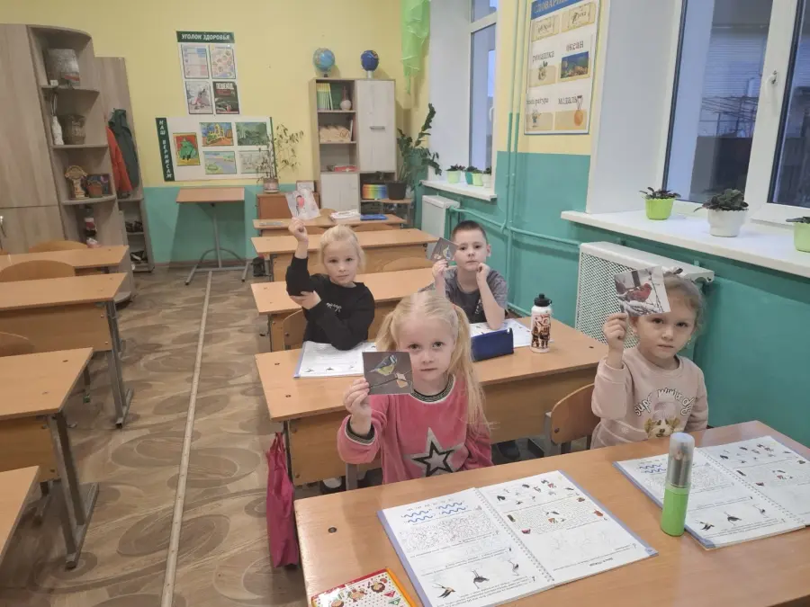 📘 работали в тетрадях, учились обводить буквы и узнавать птиц по силуэтам
