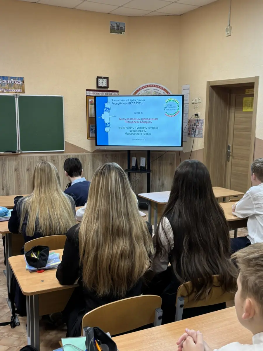23 декабря 2025 года в нашей школе в рамках информационно-образовательного проекта «ШАГ» («Школа Активного Гражданина») состоялось тематическое занятие на важную тему: «Быть достойным гражданином Республики Беларусь — значит знать и уважать историю своей страны, белорусского народа».
