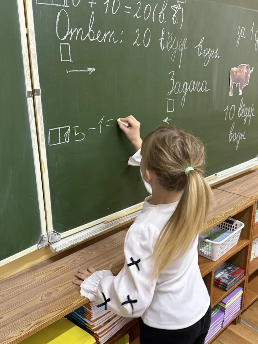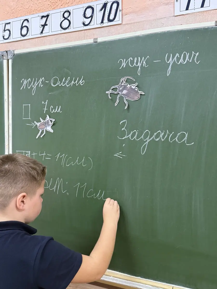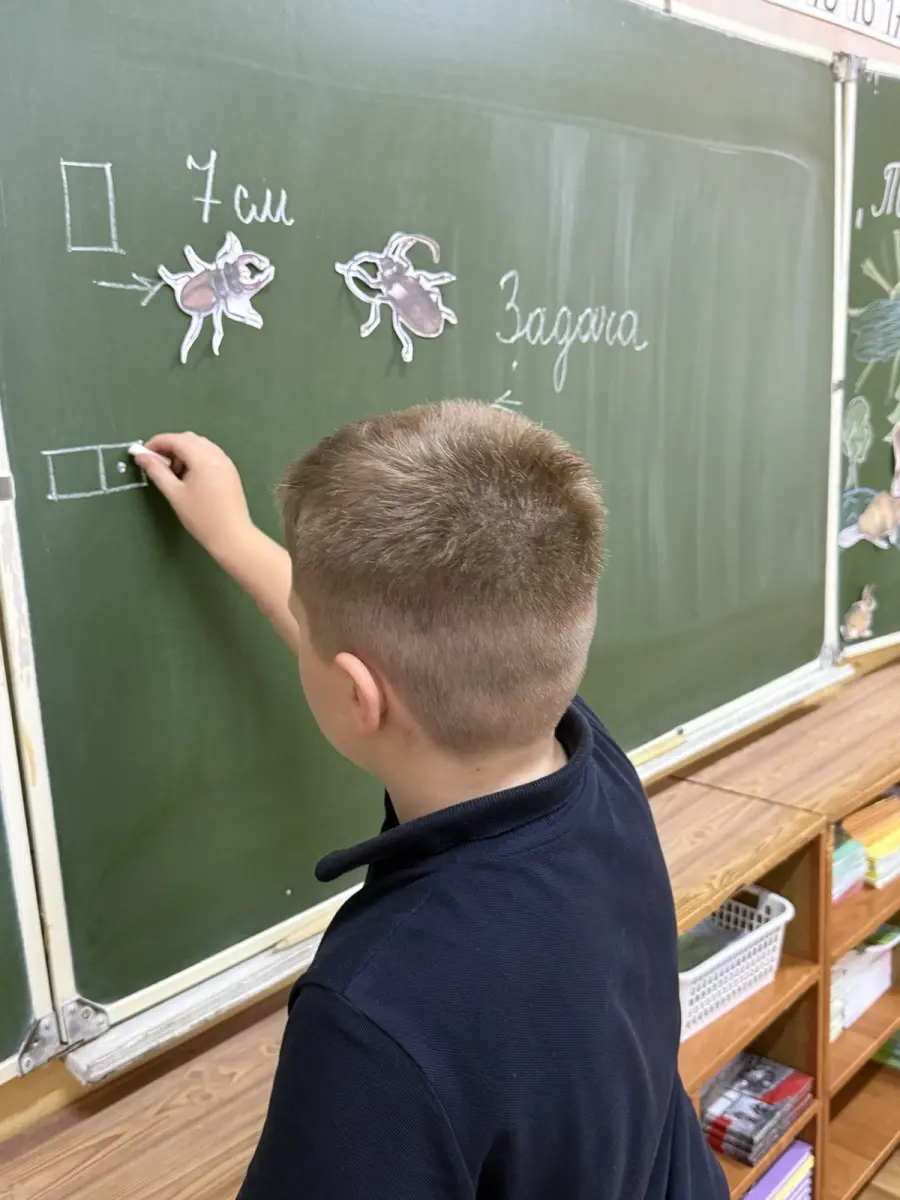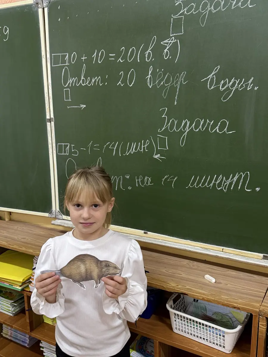2 «В» класс провёл урок математики в «Лесной школе». Вместе с лесными жителями ребята решали экологические задачи, сравнивали величины и помогали зверюшкам справиться с примерами. Особенным гостем стал лесной богатырь — Зубр, который рассказал детям о вредителях и защитниках леса, предложил посчитать, сколько воды он выпивает за день, а в завершение урока вручил памятку о правилах поведения в лесу.