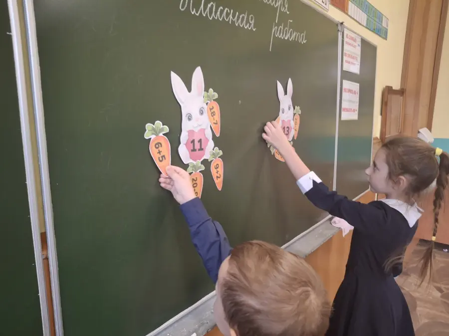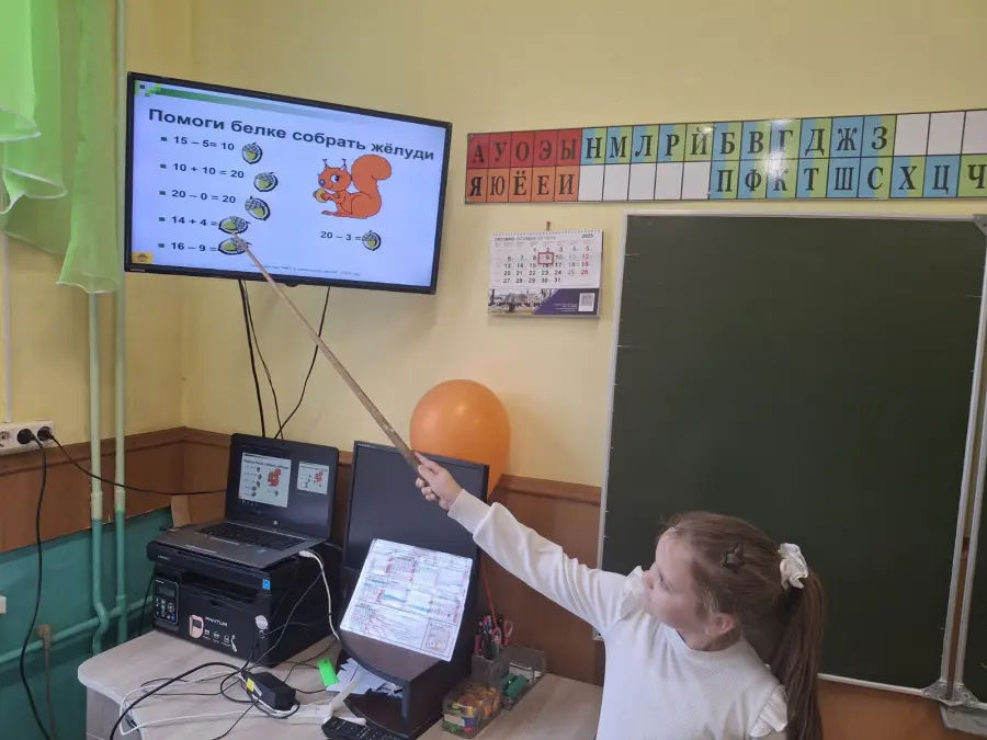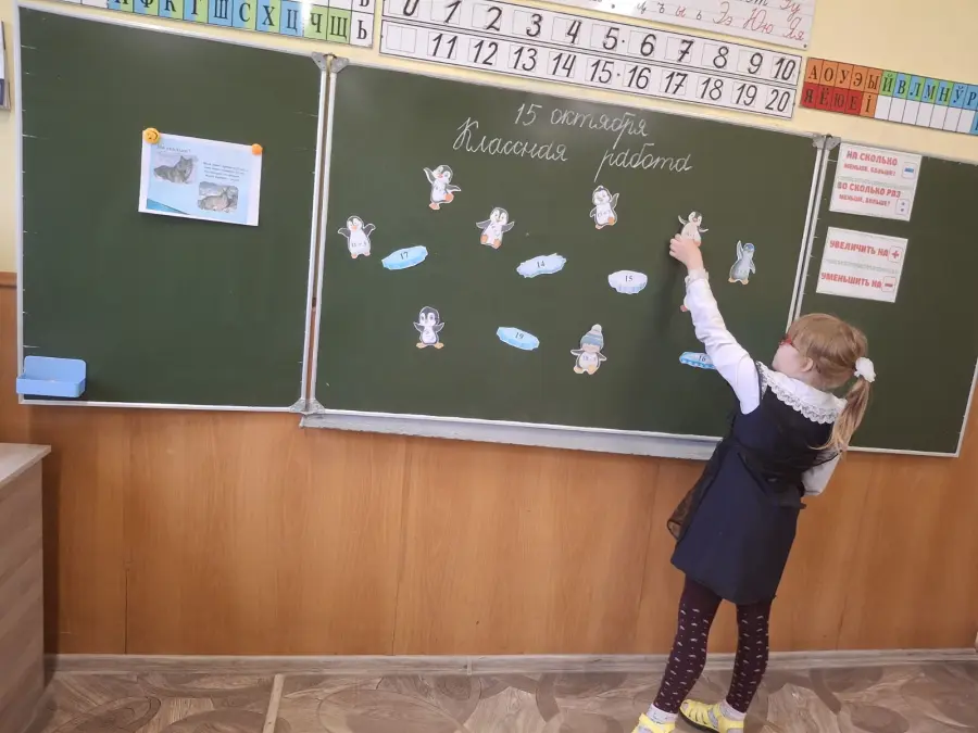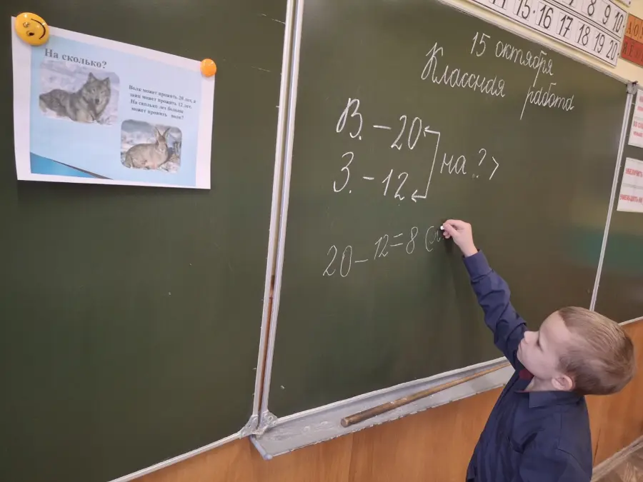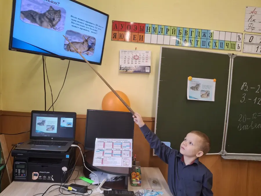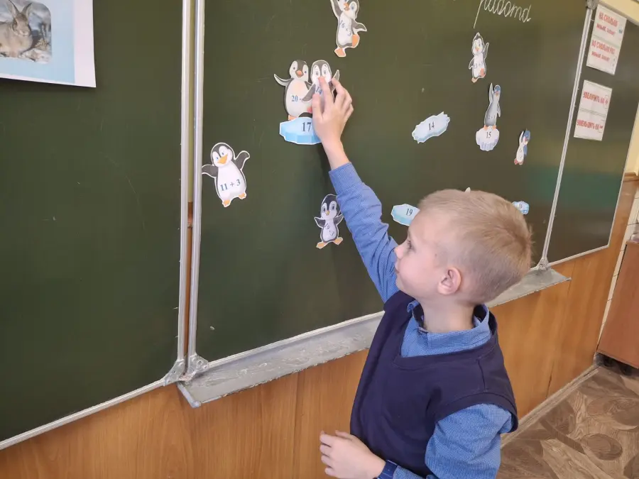 2 «А» класс на уроке математики помогал белочке собирать жёлуди на зиму, решал задачи в косвенной форме, сравнивал продолжительность жизни волка и зайца, а также угощал зайчишек морковкой. На минутке «ЭРУДИТА» учащиеся узнали интересные факты о пингвинах, а на физминутке играли в весёлую игру «Найди льдинку для пингвина».