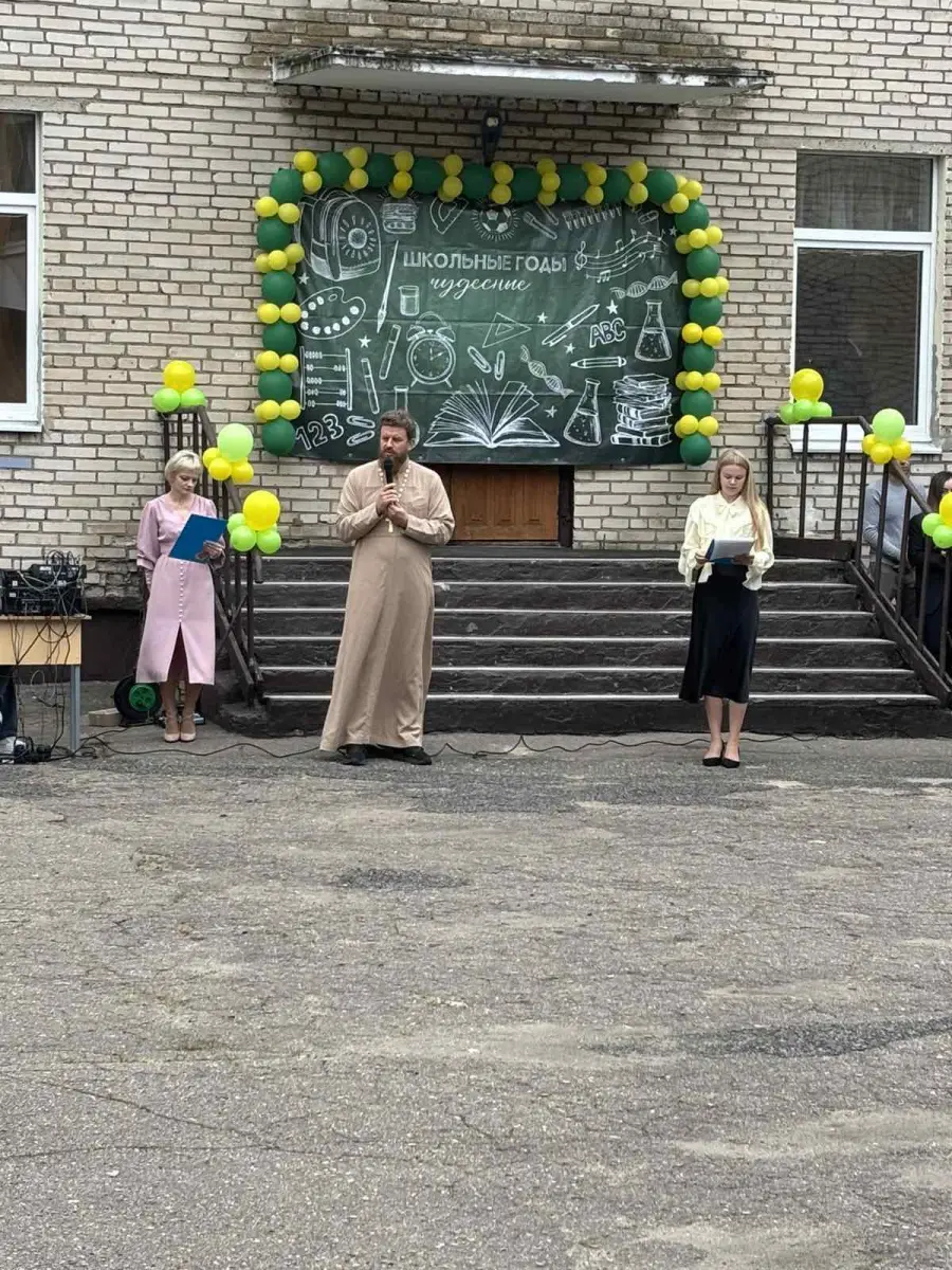 Под звуки праздничной музыки школьный двор начал заполняться нарядными учениками, взволнованными родителями и гордыми педагогами. Повсюду царила атмосфера праздника: белые банты первоклассниц, строгие костюмы выпускников, море цветов и улыбок.
