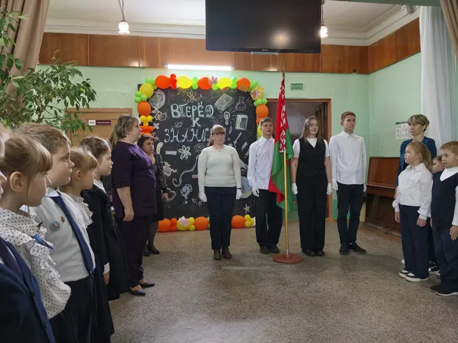 Церемония началась с выноса Государственного флага Республики Беларусь под звуки гимна. Этот торжественный момент напомнил всем учащимся и педагогам о ценностях мира, единства и уважения к своей Родине.