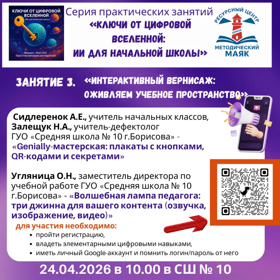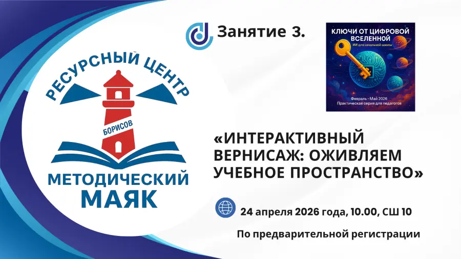 Ресурсный центр развития профессиональных компетенций учителей начальных классов Борисовского района «Методический МАЯК» приглашает педагогов на третье мероприятие серии практических занятий по использованию искусственного интеллекта в образовательном процессе.