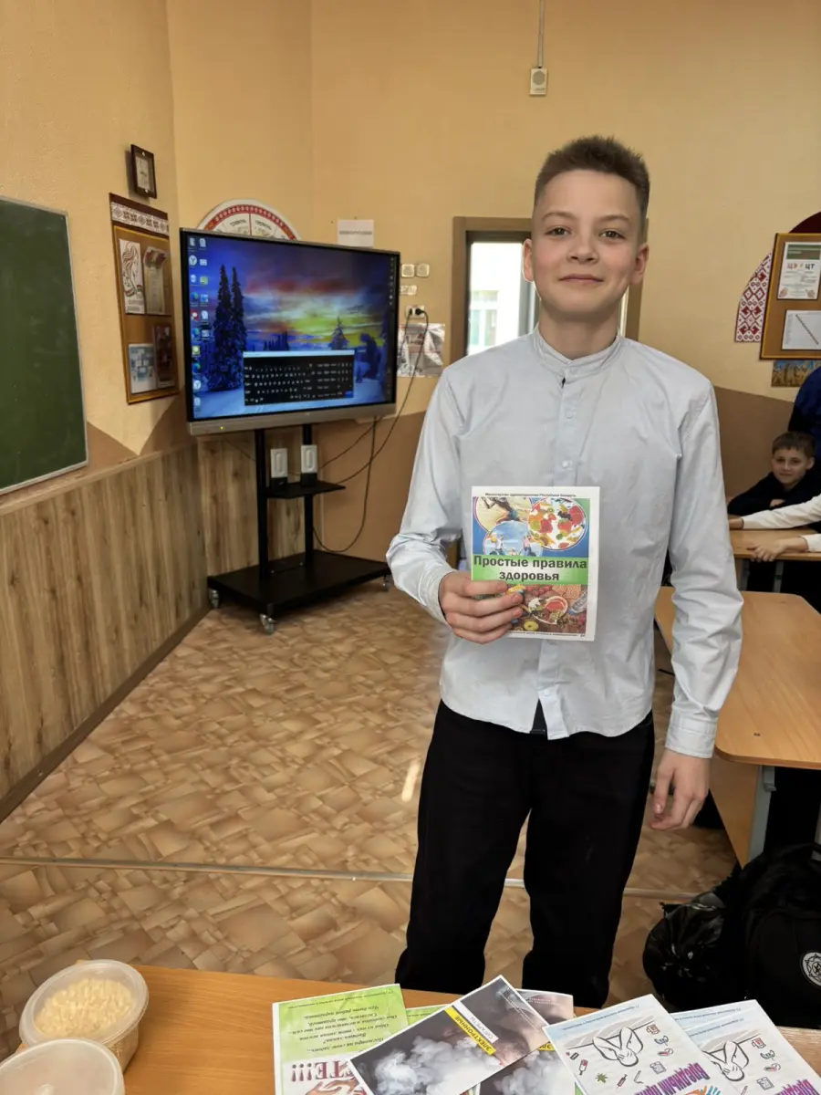 Встреча началась с просмотра тематического видеоролика, который наглядно продемонстрировал разрушительное влияние курения и вейпинга на молодой организм. Особый отклик у школьников вызвал практический эксперимент: с помощью круп и орехов психолог показала, какие необратимые процессы происходят с легкими и организмом человека в целом вследствие курения. Этот наглядный пример помог детям осознать, какую тяжелую ношу берут на себя курильщики.