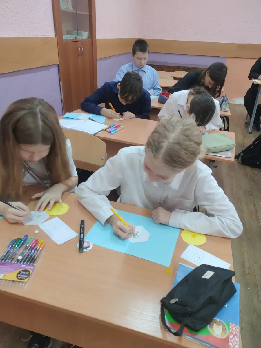 На завершительном этапе школьники на бумажных сотовых телефонах написали SMS-сообщение другу с предложением сделать какое-то полезное дело для школы.