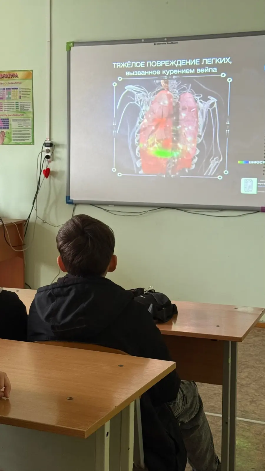 В шестой школьный день был организован коллективный просмотр профилактических роликов для 6-х классов. Название говорит само за себя: «Энергетики и вейпы: конкретные последствия». Возраст 11–12 лет выбран не случайно — это момент, когда детям кажется, что «взрослые» штучки безопасны.