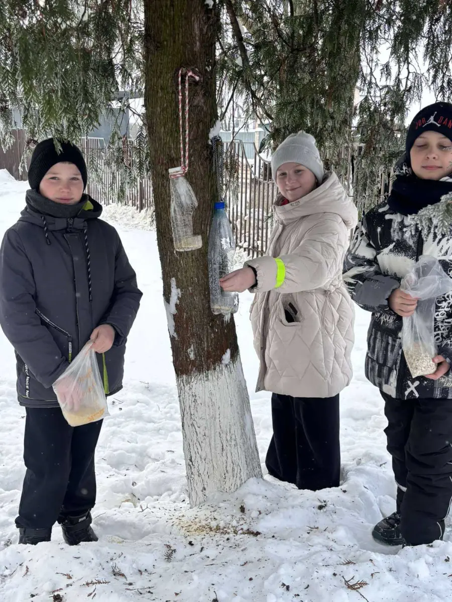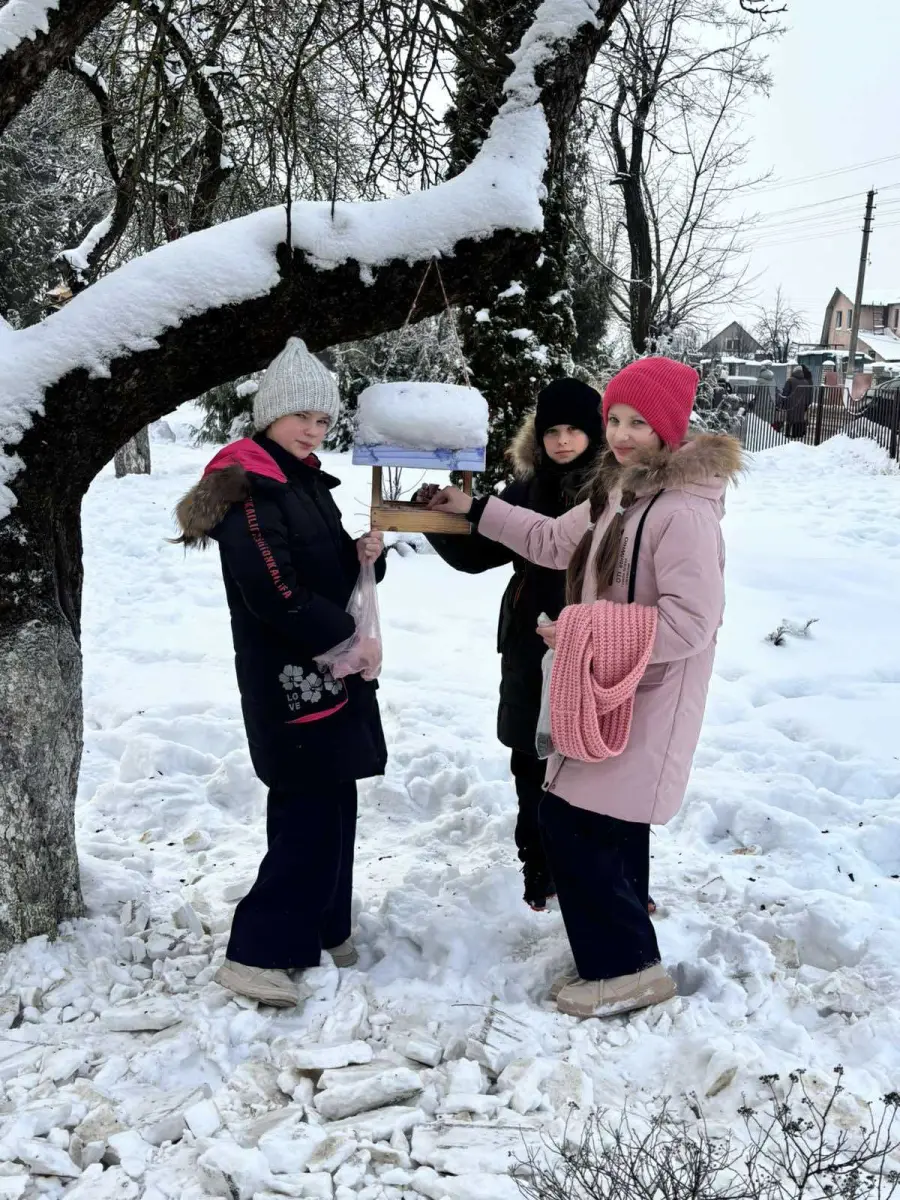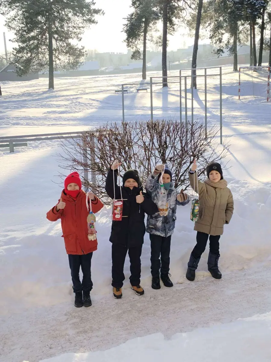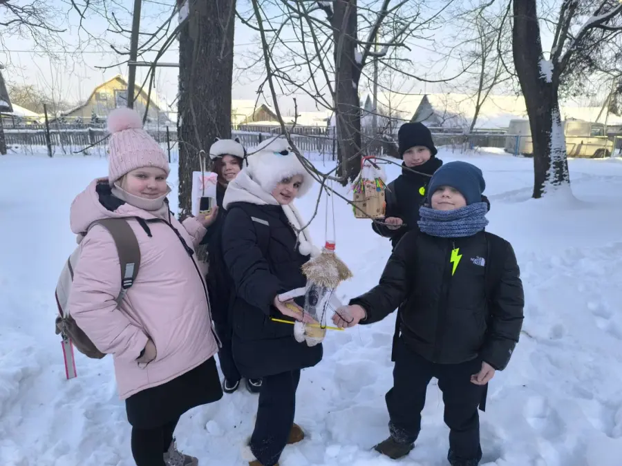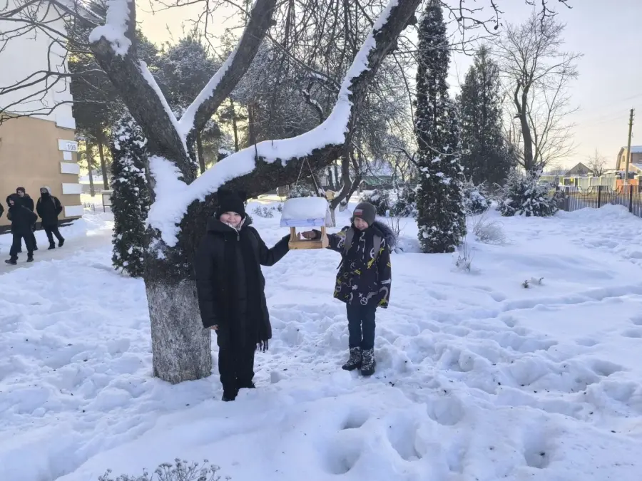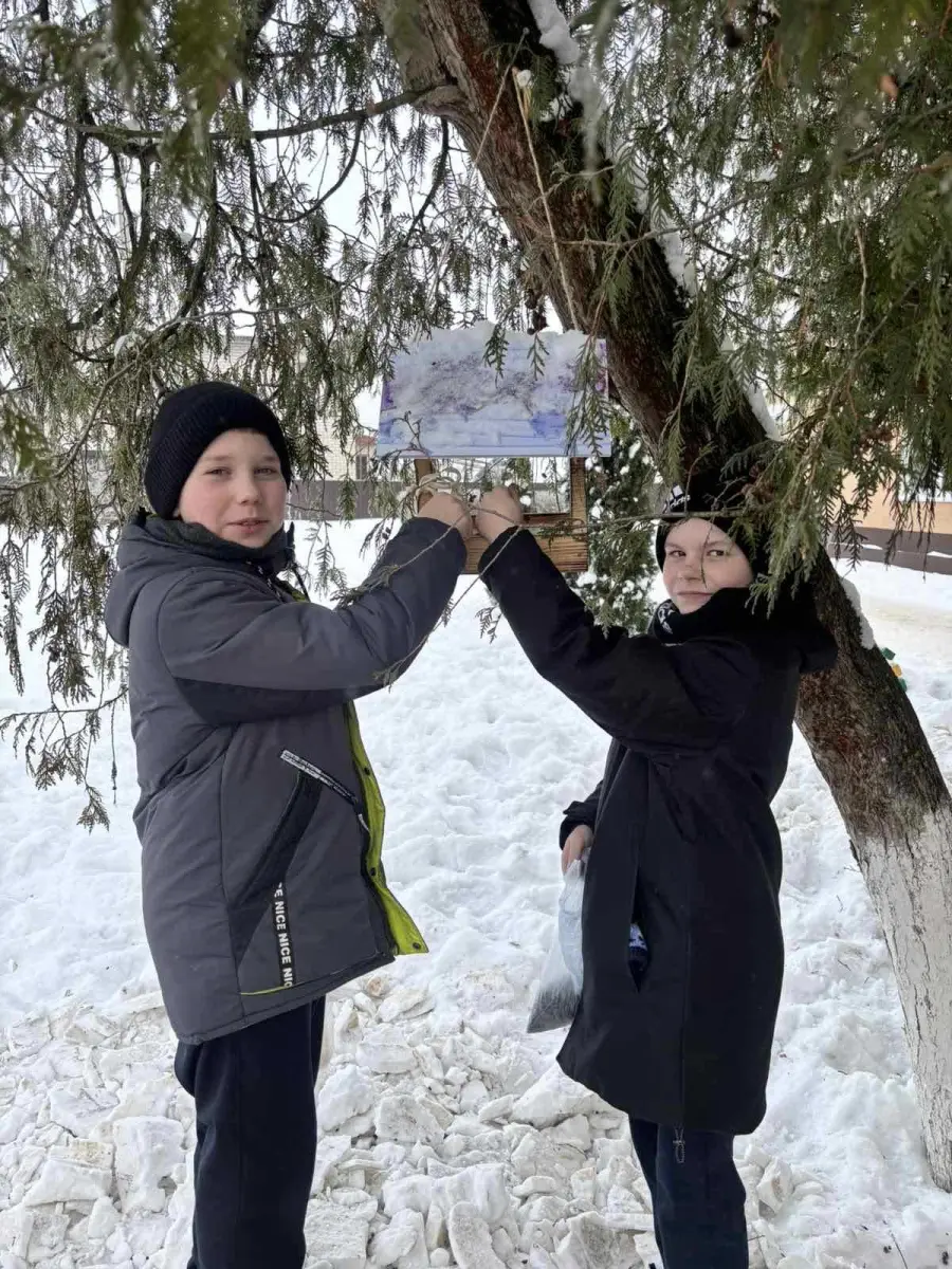 Даже в самые холодные дни на территории школы оживлённо и звонко. Учащиеся с первого по одиннадцатый класс продолжают активно участвовать в экологической акции «Зимующим птицам – нашу заботу», которая стала уже доброй традицией.